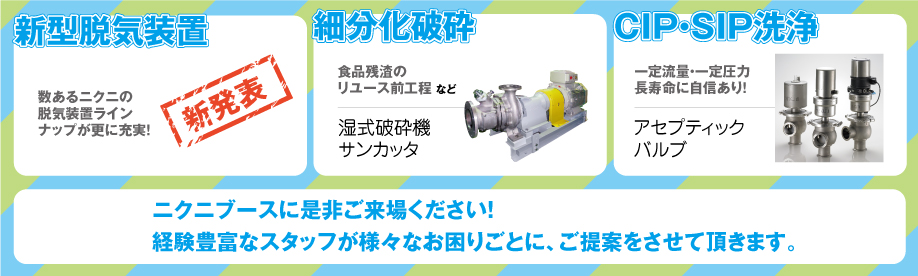 脱気装置、アセプティックバルブ、インナーボルテックスポンプ、湿式破砕機などなど