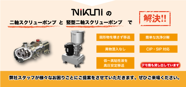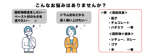 あらゆる食品用途で活躍が期待できる二軸スクリューポンプの実用途をイメージできる展示を致します。
