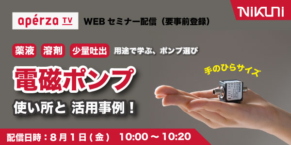 【WEBセミナーのご案内】用途で学ぶ、ポンプ選び「電磁ポンプ」使い所と活用事例