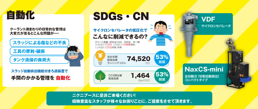 「クーラントろ過の自動化」「SDGs」「カーボンニュートラル」をテーマに