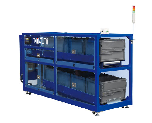 多種サイズのコンテナ・段ボール等で対応可能なストッカや