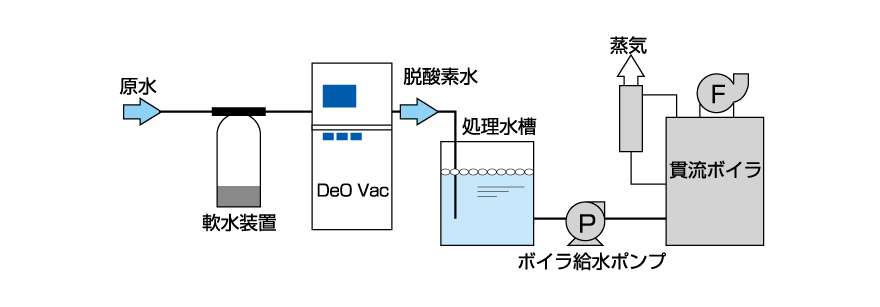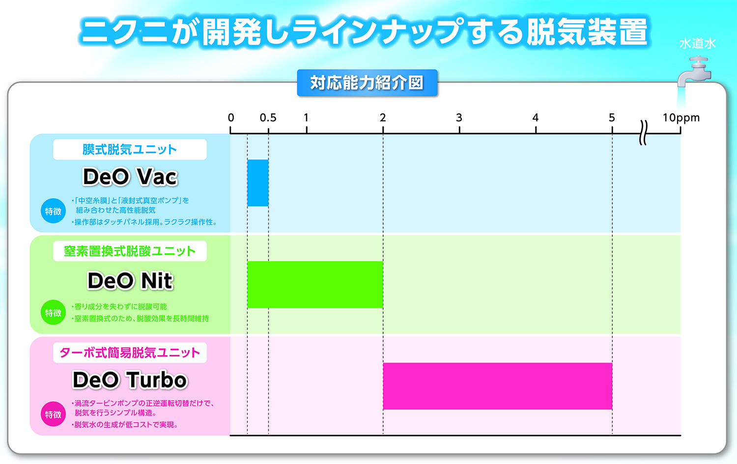 中空糸膜を使って水中の溶存酸素を除去する技術を採用。
