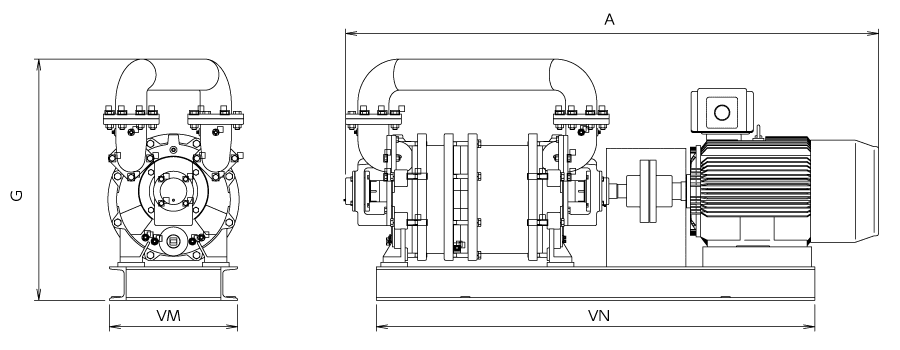 ケーシング内に入れた液体を使い、三日月形の気体の空間を作り、膨張圧縮を繰り返すことで動作する真空ポンプです。特徴は金属接触がないので、安定して気体を移送できることです。また、もともと液体を入れているので、水蒸気を含んだ気体や可燃性ガス(溶剤系)の吸引なども可能です。