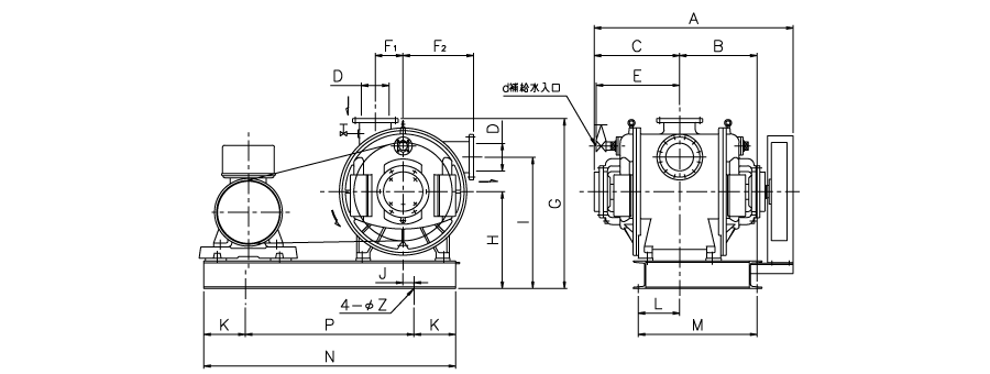 カタログの真空ポンプ性能表をご参照ください。なお、補給水量が過多の場合、モータの過負荷につながる場合があります。