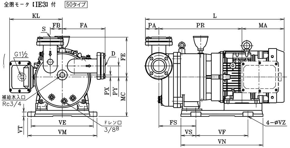 液封式真空ポンプ 一体型 FC