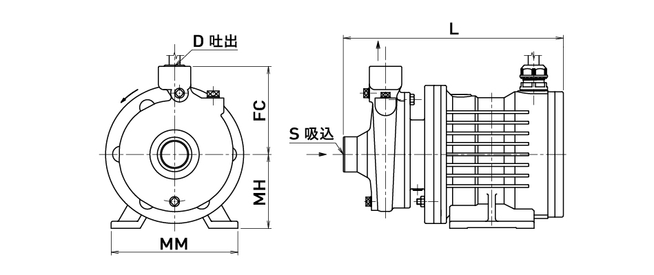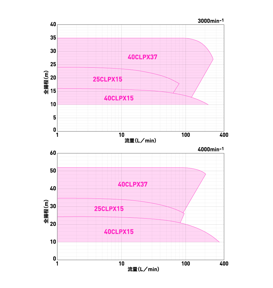 渦流タービンポンプに比べると「大流量・低揚程」の性能となります。