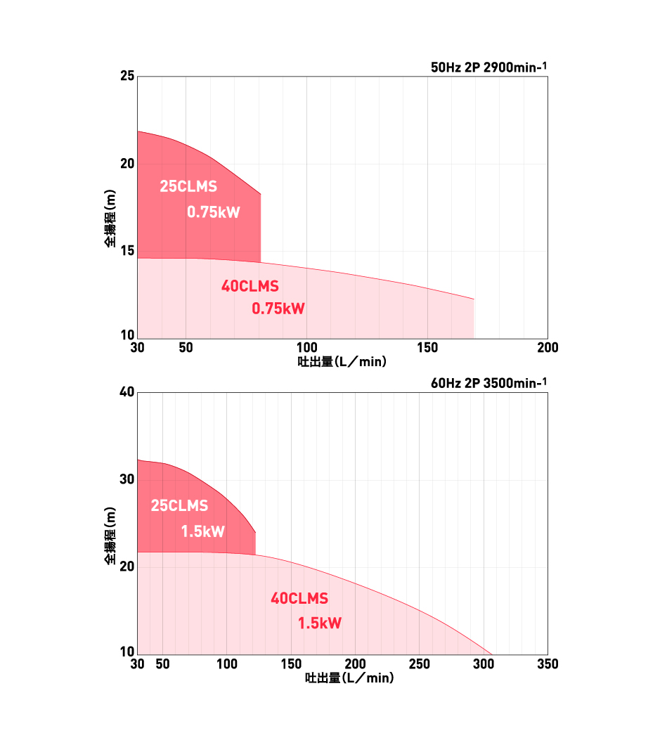 渦流タービンポンプに比べると「大流量・低揚程」の性能となります。
