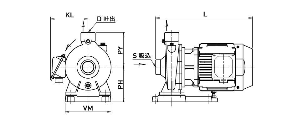 渦流タービンポンプに比べると「大流量・低揚程」の性能となります。