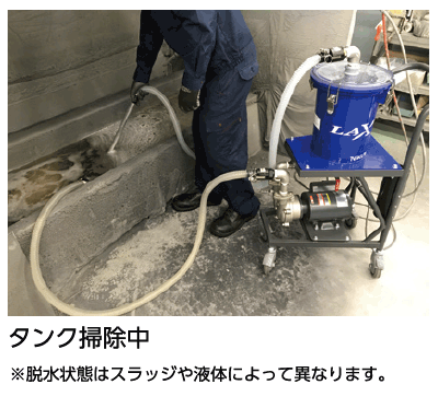 - 液中固形物を吸引したあと、殻引きすることで、脱水ができ、産廃費や液使用量の削減につながります。