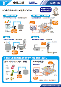 業界別 用途事例 食品・医薬品・化粧品 伝統的な酒蔵での日本酒製造工程における二軸スクリューポンプ採用事例 長龍酒造 株式会社 様 【業界】 ・飲料 【用途】 ・日本酒製造工程での火入れ時のもろみ移送 【導入効果】 ・エアを吸い込んでも 安定移送できるポンプで調整作業が激減 ・作業効率UPで作業時間短縮に 詳細はこちら セントラルキッチン・給食センター・食品工場 用途事例 セントラルキッチン・給食センター・食品工場などで、様々なニクニ製品をご使用いただいております。 工程フローマップ(アプリケーションマップ)と、導入例・解決事例で詳細をご確認ください。 資料 関連製品 食品向け固形物移送一体型IVHDサニタリーステンレス製 渦流タービンポンプMSDサニータ新型ダイヤフラム式アセプティックバルブサイクロンセパレータヴォルテックス ダイナミック フィルタVDF 食品製造「アルコール移送」にニクニのうず巻ポンプ 食品工場や医薬品の分野で難しいとされているアルコール移送を、ニクニのうず巻ポンプが活躍しています。 関連製品 中圧ステンレス製 マグネットうず巻ポンプCTM